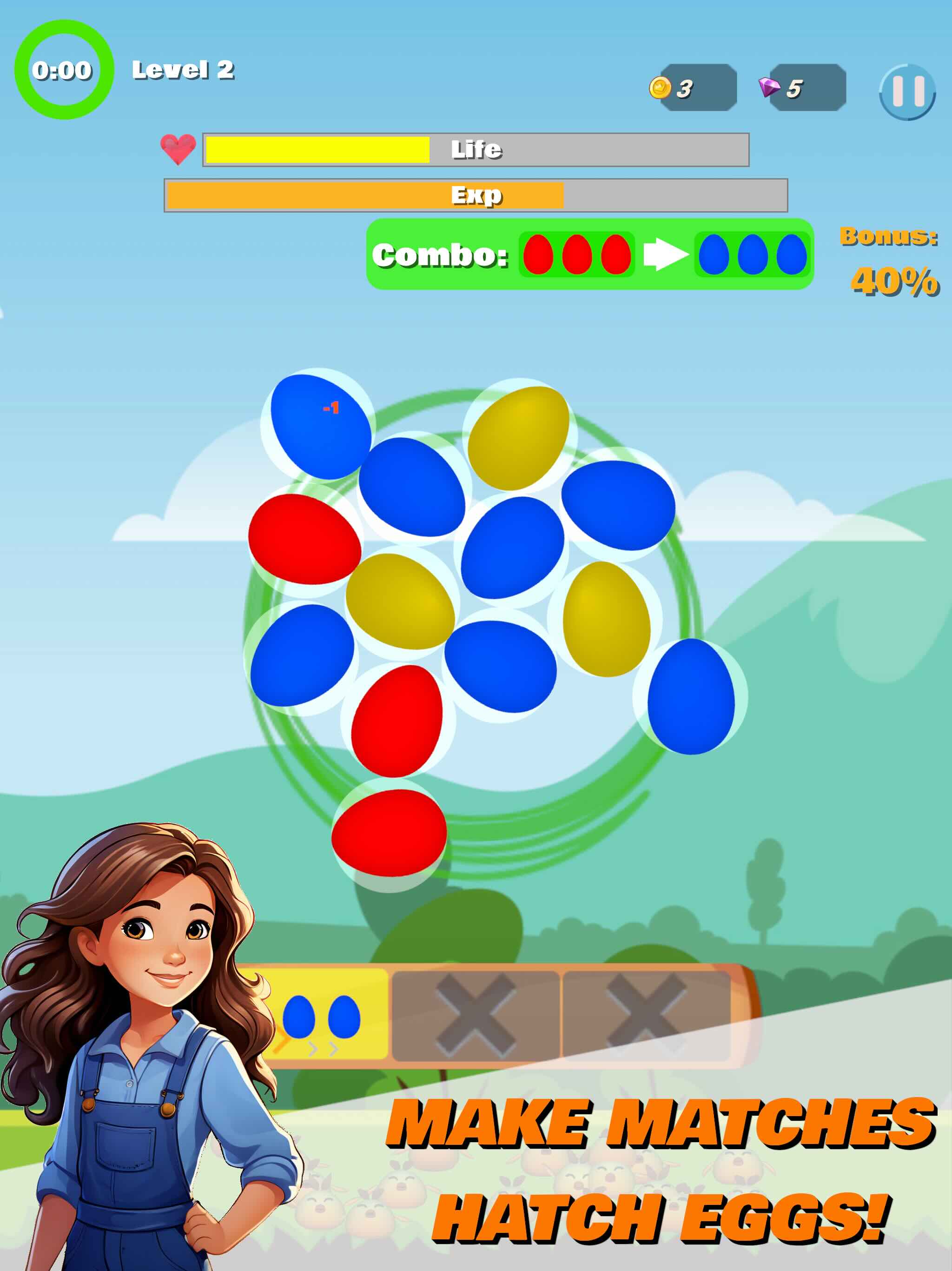 Play Hatcher, the speed game for mobile where you try and hatch as many eggs as possible before they overflow. Level up to increase your Hatchers speed, capacity, and earn special abilities as you make your way through multiple worlds.